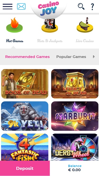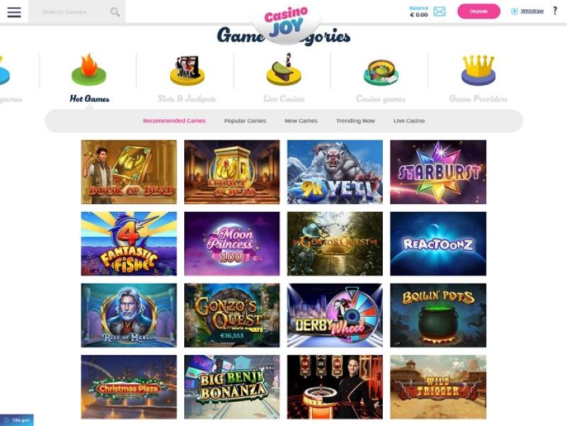 Casino Joy 由 Microgaming, Net Entertainment, Big Time Gaming, Evolution Gaming, Ezugi, iSoftBet, Oryx, Play'n GO, Quickspin, Rabcat, Relax Gaming, Yggdrasil, Wazdan, Pragmatic Play, Red Tiger Gaming, Skillzzgaming, Fantasma Games, Kalamba, Skywind, Triple Edge Studios, Dreamtech Gaming, All41 Studios, Gameburger Studios, Neon Valley Studios, Golden Rock Studios, GONG Gaming, Games Global, EveryMatrix, Push Gaming, Cayetano, Gamomat, Foxium, Just For The Win, Reflex Gaming, Golden Hero, 4ThePlayer, AvatarUX, ReelPlay, Snowborn Games, Boomerang Studios, Max Win Gaming, Half Pixel Studios, Peter And Sons, Eurostar Studios, Aurum Signature Studios and Penguin King提供支持,其赌场游戏通过基于网页的即时游戏平台提供,可直接通过您的网络浏览器加载,无需下载任何软件。该网站设计精良,游戏易于查找。此外,它还支持移动端游戏,您可以在任何有数据连接的地方使用智能手机或平板电脑进行游戏。