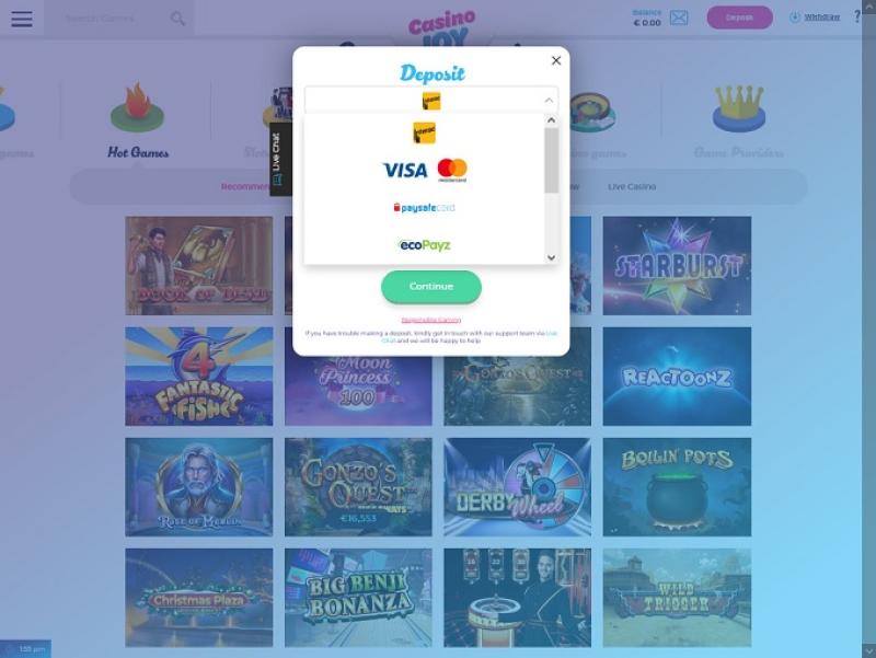 Casino Joy 的银行系统非常完善,网站支持使用银行电汇、信用卡和电子钱包存取款。网站有 24 小时的待处理时间,但电子钱包会在 24 小时后立即支付。其他方式可能需要多花几天时间。每周奖金提现限额为 5,000 英镑,每月奖金提现限额为 20,000 英镑。