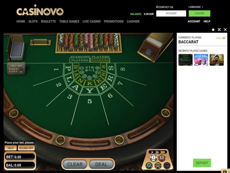 Casinovo 由 Microgaming, BetSoft, Big Time Gaming, Evolution Gaming, Ezugi, Genesis Gaming, iSoftBet, Quickspin, Rabcat, The Art Of Games, Endorphina, Games Global, bluberi and NextGen提供支持,其赌场游戏通过基于网络的平台以及移动网站提供,让玩家有机会在任何有互联网连接的地方玩游戏。Baccarat