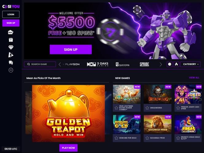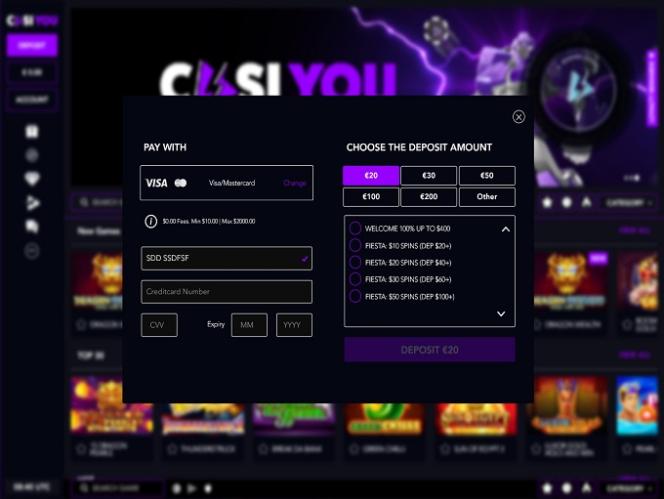 CasiYou Casino 是一家在线赌场,由一家根据马恩岛法律注册的公司所有,并持有马恩岛博彩监管委员会的许可。该品牌主要面向来自加拿大和新西兰的玩家。