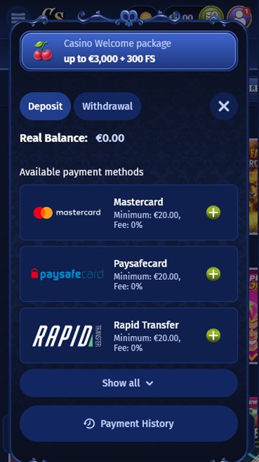 为了保持控制并防止赌博成瘾,在线运营商通常会在平台上配备各种负责任博彩的工具。这个网站没有存款和亏损限额,但有自我排除功能,并链接到 GamCare、 Gamblers Anonymous 、赌博治疗中心等。