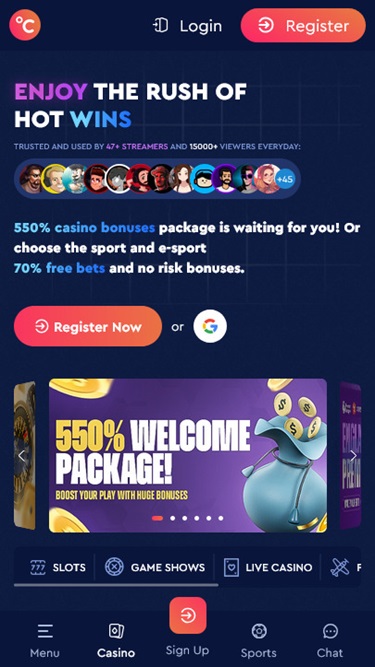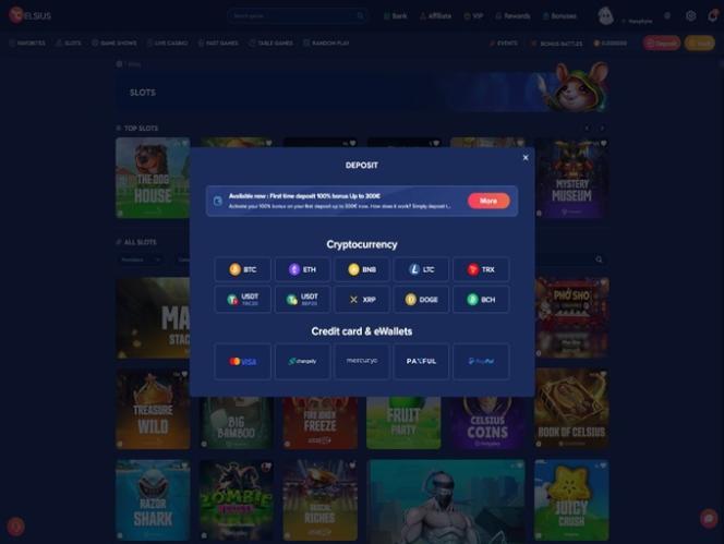 该网站允许用户访问所有英语、法语和德语版块和内容。在可访问性方面, Celsius Casino 针对 Android 和 iOS 智能手机设备优化了整个平台。移动游戏玩家无需下载应用程序,所有内容均可在浏览器中流畅运行。
