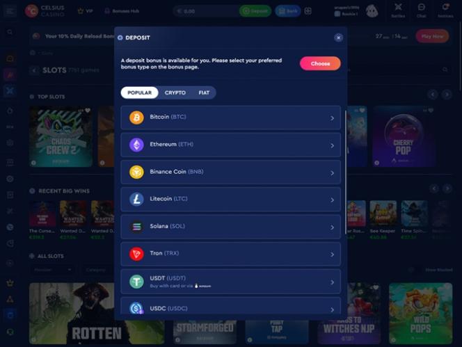 如果两个忠诚度计划还不够,Celsius Casino 还提供众多促销和奖金。该品牌为新玩家提供迎新礼包,并为现有玩家提供多项促销活动。此外,还有每日活动和季节性奖金,让每个人都乐在其中。