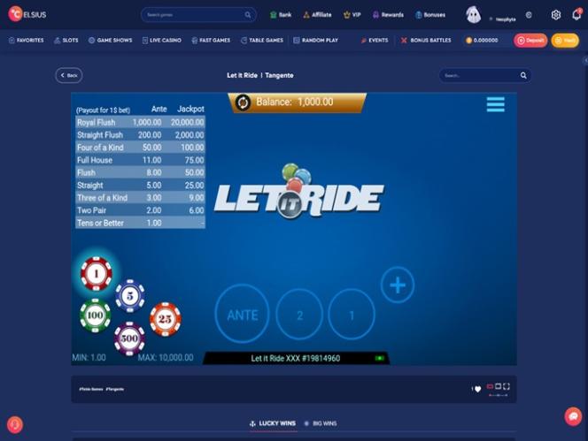 在主页顶部,您可以访问一个水平菜单,其中包含所有游戏类别,例如老虎机、游戏节目、真人荷官游戏、桌面游戏和即时游戏。该菜单包含有关VIP系统、奖励和奖金的详细页面。