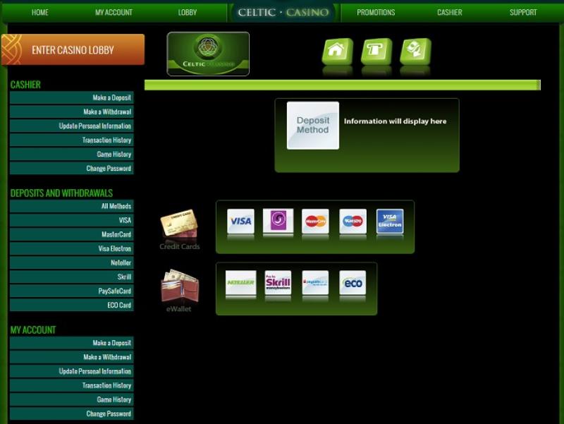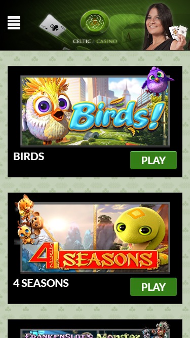 Celtic Casino 由 BetSoft, Visionary iGaming and Distance Gaming提供支持,其游戏通过基于网络的平台提供。