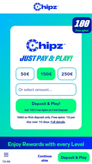 在智能设备上玩在线赌场游戏已经如此流行,以至于几乎无法想象一个正规的赌场运营商会不确保玩家能够通过任何可用的设备访问赌场内容。Chipz Casino 深知,对于现代玩家来说,随时随地畅玩自己喜爱的游戏是多么重要。