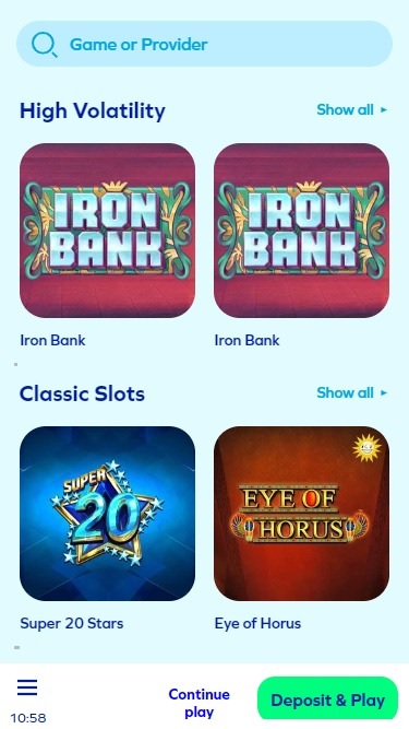 该运营商与 Evolution Gaming、iSoftBet、Quickspin 等多家在线赌场软件供应商合作,因此赌场类别充满了顶级游戏,可以满足最苛刻的在线赌场玩家的需求。