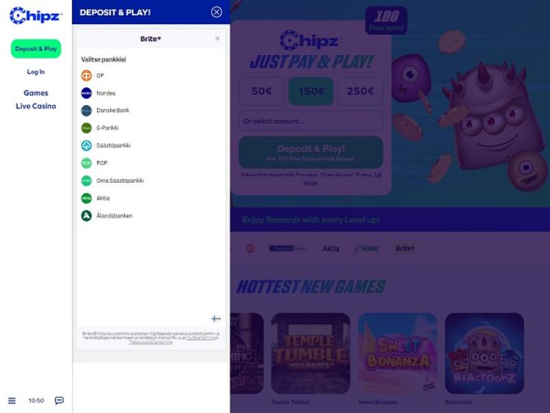 Chipz Casino 完全英国赌场不允许玩家来⾃ Ohio