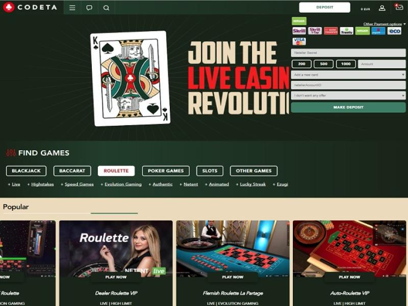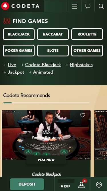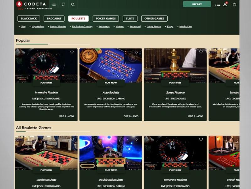 除了标准的赌场游戏外,Codeta Casino 还设有真人荷官部分,这是赌场运营的突出重点。
