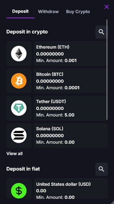 - 玩家可以使用传统的支付方式直接从网站购买加密货币。