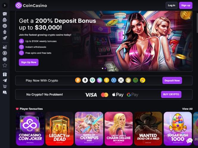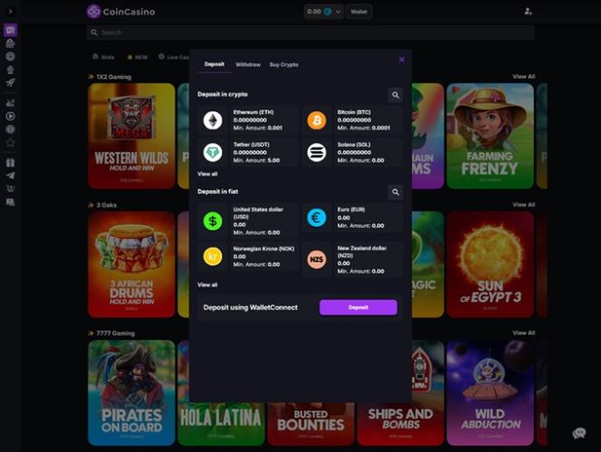 Coin Casino 是一家专注于加密货币的在线赌场。玩家可以使用多种货币进行存款和取款,包括比特币、以太坊、泰达币、 Solana 、狗狗币、 Toncoin 、瑞波币、 USD Coin等等。