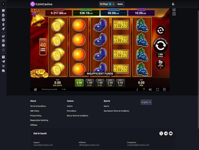 Coin Casino 是一个现代化的博彩网站,接受来自德国、奥地利、瑞士、加拿大、荷兰、瑞典、法国和葡萄牙的玩家。该品牌提供丰富的游戏投注选项,包括在线老虎机、真人荷官、速成游戏和桌面游戏,以及包含丰富奖金和活动的促销计划。这是一家以加密货币为导向的在线赌场,因此希望使用现代资金管理方式的玩家可以使用多种加密货币进行操作。