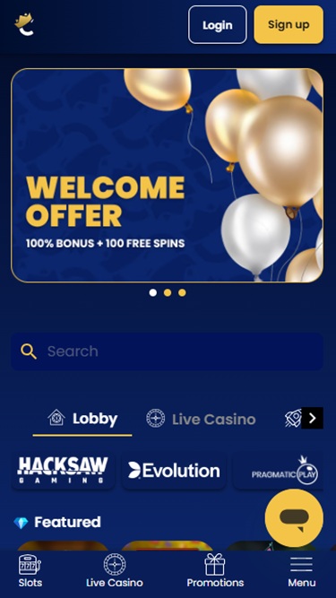 该平台非常易于浏览,因为用户体验一直是其首要关注的重点之一。进入主页后,您可以查看当前正在进行的促销活动、网站上的最新投注,并可以选择导航至“赌场”或“真人娱乐场”版块。