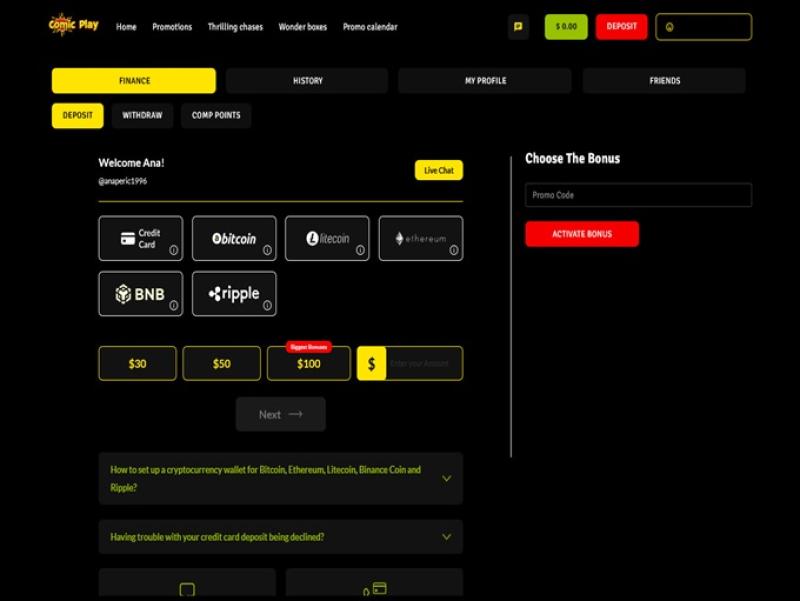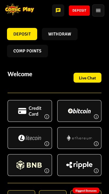 这个美国友好的中心接受BTC支付交易。除了加密货币,ComicPlay赌场还提供许多安全的电子钱包选项、标准银行方法以及支付卡。
