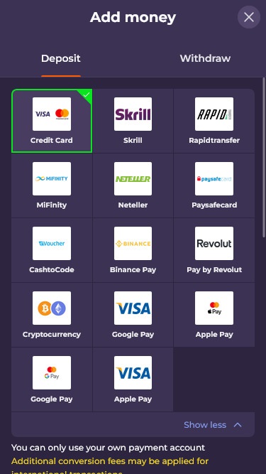 - 最低存款金额较低,但最低提款金额较高。