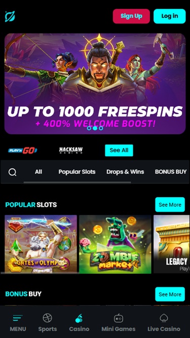玩家登录后,首先映入眼帘的是包含所有所需赌场页面的主页。主页顶部有一个动态横幅,展示所有即将开始的热门体育赛事,以及一些值得考虑参与的奖金和促销活动。