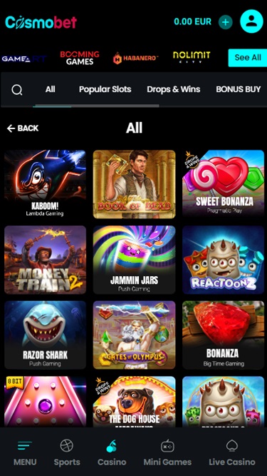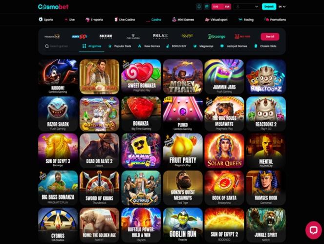 Cosmobet Casino 就证明了这一点,其网站允许用户从超过 110 家软件提供商中进行选择。这是一个庞大的数字,其中包括NetEnt 、 Pragmatic Play 、 Yggdrasil Gaming和Evolution等知名公司,以及 LuckyStreak、Xprogaming 和 Stakelogic 等众多其他工作室。
