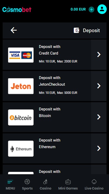 尽管 Cosmobet 赌场的玩家无法参与忠诚度计划,但运营商还是不遗余力地为他们提供了各种促销活动。无论是现有玩家还是新玩家,都能享受到丰富的奖金选择。