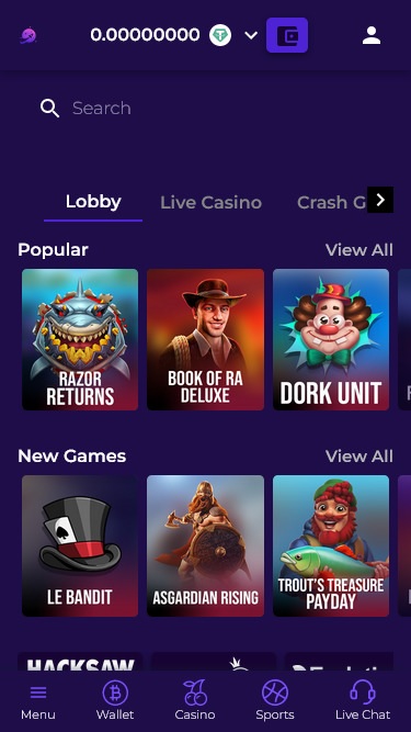 该网站的现代外观在较小的屏幕上保持不变,因此 Crashino Casino 在智能手机和平板电脑上看起来也很棒。