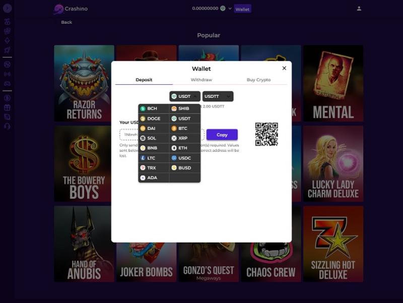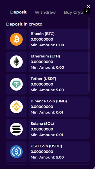 正如我们之前提到的,该赌场支持多种加密货币和加密网上银行方法,因此那些还没有尝试存入数字货币或没有比特币钱包的赌徒应该创建一个,以便加入这个仅限加密货币的在线赌场。