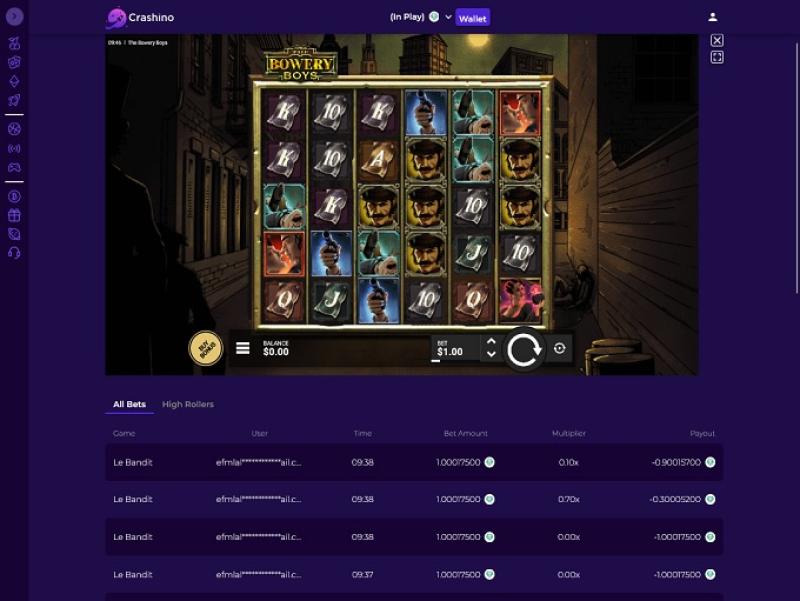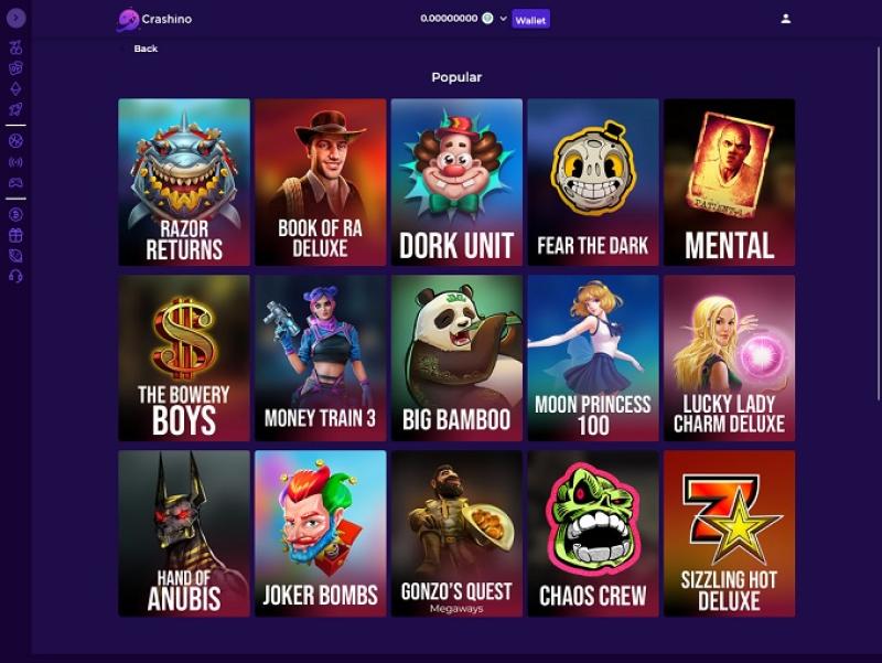 乍一看,这里一切都完美!这个网站应有尽有。不过,请记住,Crashino Casino 没有明显的许可证印章。