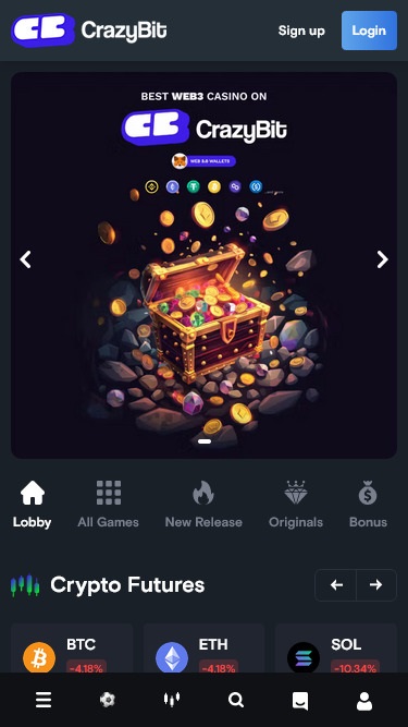 在这里,您可以看到更详细的游戏分类,例如功能购买、RNG游戏、原创游戏和体育博彩。总结一下,Crazybit.io Casino 拥有所有必要的功能,让您拥有完整的博彩之旅。我们对此本身并无异议,只是我们希望看到更多精彩纷呈、活力四射的内容。