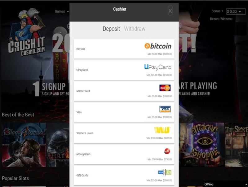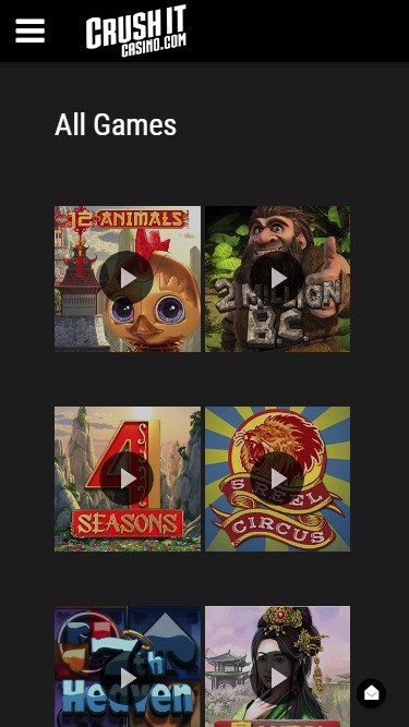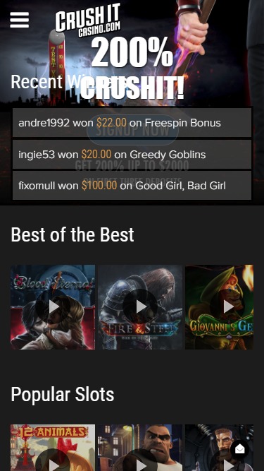 Crush It Casino 由 BetSoft, Rival and Spinomenal提供支持,其游戏通过基于网页的即时游戏平台提供。这意味着游戏可以直接通过您常用的浏览器加载。Crush It Casino 也支持移动端游戏,让您在任何有数据连接的地方都能用智能手机玩游戏。