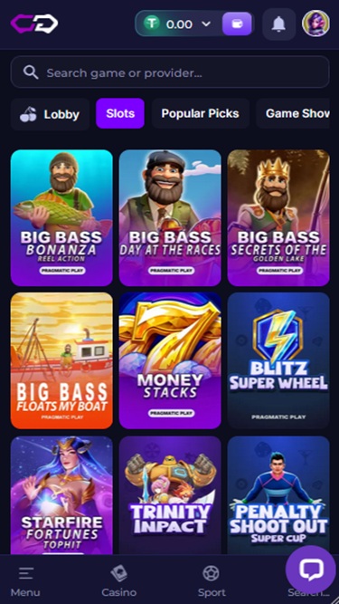 虽然该品牌名称可能比较普通,但您可以访问的平台却相当现代,视觉效果也相当吸引人。其设计简约,以宜人的紫色和蓝色为主色调,为玩家营造出非常舒缓的氛围。