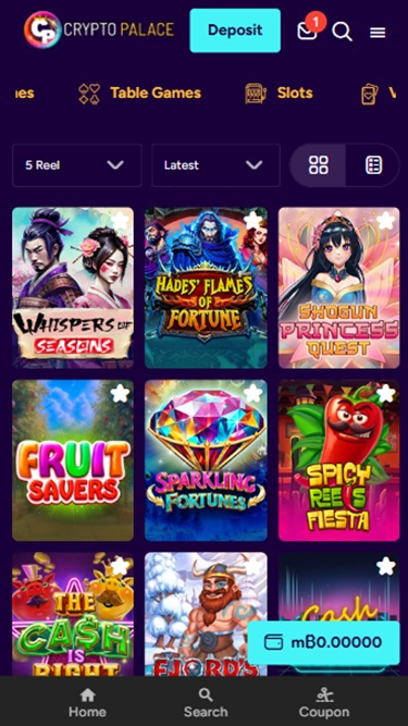 这家面向美国的加密货币赌场经过优化,方便您在任何移动设备、个人电脑和大屏幕上畅玩在线赌场游戏。稳定的网络连接让您享受超快的游戏加载速度和无限乐趣。敬请期待,我们即将更深入地探索 Crypto Palace 赌场!