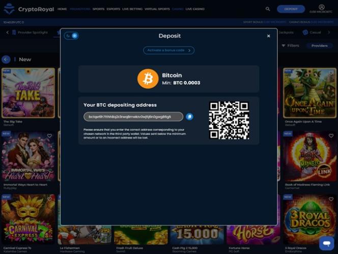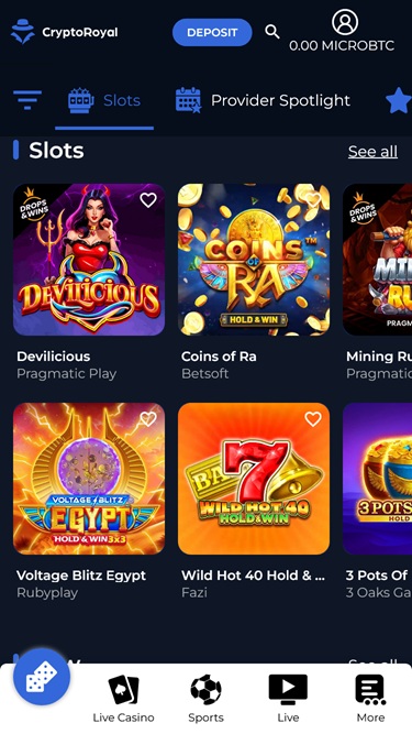 如果您喜欢发掘隐藏的宝藏,并乐于浏览浩瀚的游戏库,那么CryptoRoyal绝对不会让您失望。该品牌已获得超过90家软件供应商的授权,为您提供种类繁多的赌场游戏。