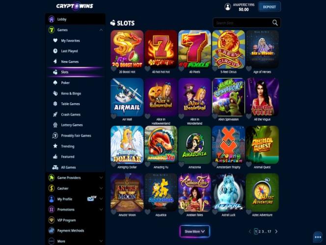 正如我们之前提到的,赌场的网站结构良好,导航简单,使赌徒可以轻松浏览所有部分:新游戏、老虎机、扑克、基诺和宾果游戏、桌面游戏、崩溃游戏、彩票游戏、公平游戏、趋势、特色和所有游戏。
