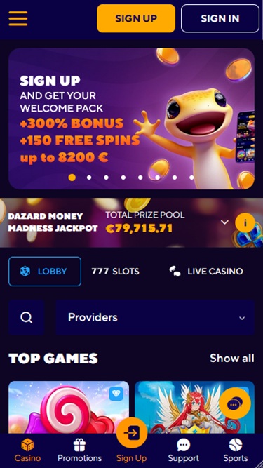 游戏分为几个部分:老虎机、桌面游戏、真人荷官赌场游戏、加密游戏、奖金购买和 Megaways......实际上有数千种游戏,可以满足每个人的口味。