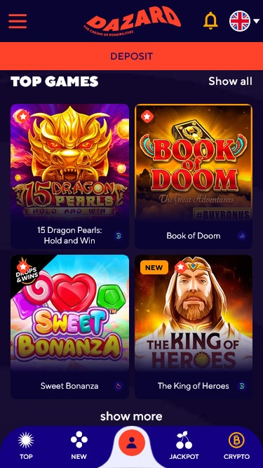 Dazard 流行的桌面游戏有:欧洲轮盘赌、二十一点、骰子、美式轮盘赌、目标、欧洲轮盘赌、基诺、飞行员、地雷、完美对子二十一点、德州扑克、美式轮盘赌、双重曝光、二十一点投降……