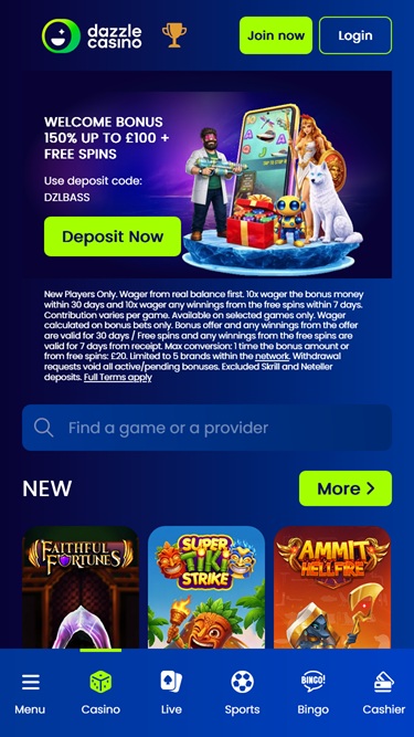 在这个在线赌场,玩家不仅有机会尝试一些最受欢迎的游戏,还能探索各种类型的新鲜、引人入胜的内容。以下只是 Dazzle Casino 提供内容的一小部分。