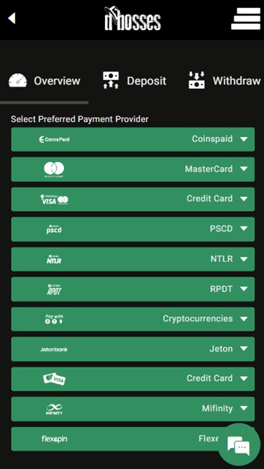 Dbosses 赌场支持多种常用的账户充值支付方式,例如借记卡和信用卡、银行电汇以及热门的加密货币银行服务。请注意,提款处理时间可能需要长达 48 小时,而通过电子钱包提现则可即时到账。