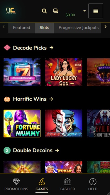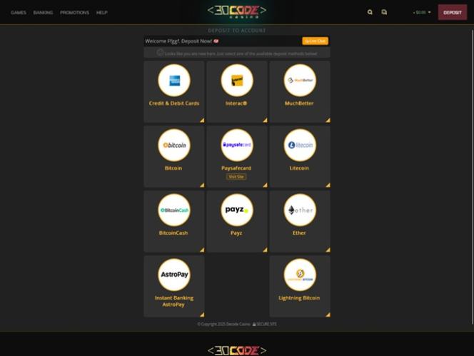 Decode Casino 是一家面向美国和加拿大玩家的在线赌场。它隶属于同一集团,旗下还有Sloto'Cash 、Desert Nights、Miami Club 以及其他面向美国的品牌。请注意,在撰写本文时,该赌场尚未获得博彩牌照。