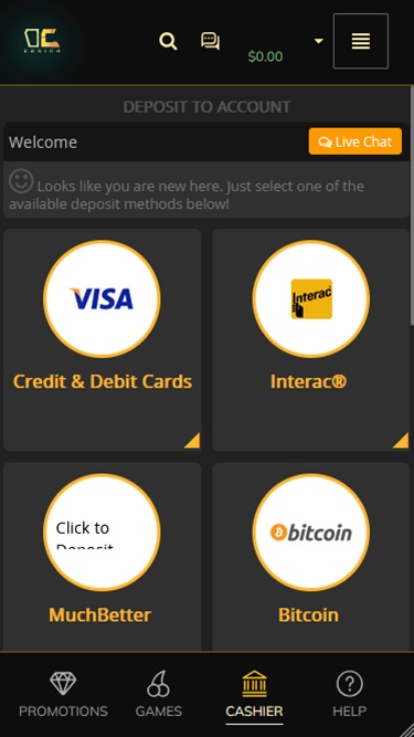 赌场的出纳员支持加密货币和传统支付方式,如借记卡和信用卡、银行转账、电子钱包和其他在线汇款系统。
