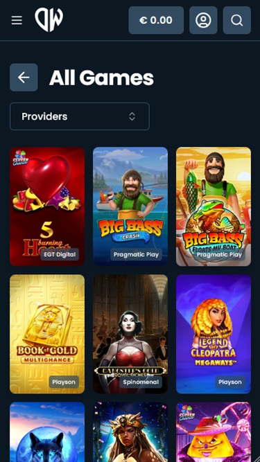 DepositWin Casino 在这方面做得很好,因为玩家可以从业内一些最好的提供商中进行选择,例如 Betsoft、Blueprint Gaming、Endorphina、Evolution Gaming、Gamomat、Push Gaming、Pragmatic Play、 Quickspin等。