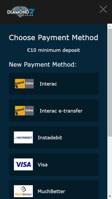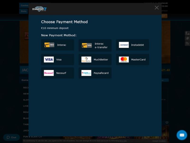 Diamond7 赌场由 Microgaming, Net Entertainment, 1x2gaming, Barcrest, Big Time Gaming, ELK Studios, Evolution Gaming, EYECON, Ezugi, lightningboxgames, Novomatic, Oryx, Play'n GO, Rabcat, Relax Gaming, Thunderkick, Wazdan, Realistic Games, Booming Games, Stakelogic, Pragmatic Play, Nolimit City, Felt Gaming, Red Tiger Gaming, IGT, Spinomenal, Fantasma Games, SYNOT Games, Kalamba, Revolver Gaming, Skywind, Spinmatic, Triple Edge Studios, BGAMING, Northern Lights Gaming, Stormcraft Studios, Electric Elephant Games, Pocket Games Soft, All41 Studios, Gameburger Studios, Pulse 8 Studios, Neon Valley Studios, Golden Rock Studios, Spearhead Studios, Swintt, SpinPlay Games, HungryBear Gaming, GONG Gaming, Blue Guru Games, Lady Luck Games, On Air Entertainment, Buck Stakes Entertainment, Design Works Gaming, Games Global, 2by2 Gaming, Ainsworth, Blueprint Gaming, Endemol Games, Greentube, Leander Games, Merkur Gaming, NextGen, Push Gaming, Tom Horn Gaming, Inspired Gaming, Gaming Realms, SG Interactive, Red7Mobile, Scientific Games, Reel Time Gaming, Authentic Gaming, Iron Dog Studio, Old Skool Studios, Foxium, Just For The Win, Storm Gaming Technology, PearFiction Studios, Apollo Games, Wild Streak Gaming, Slingshot Studios, Fortune Factory Studios, Jade Rabbit Gaming, 4ThePlayer, AvatarUX, Gamevy, Crazy Tooth Studio, NetGaming, High 5 Games, ReelPlay, AGS Interactive, Alchemy Gaming, Black Pudding Games, Snowborn Games, Hacksaw Gaming, Max Win Gaming, Gold Coin Studios, SilverBack Gaming, Peter And Sons, Eurostar Studios, Aurum Signature Studios, Armadillo Studios, Lucksome Gaming, Area Vegas, RAW iGaming, Leap Gaming, Wishbone Games, Spribe, Print Studios, HammerTime Games and Four Leaf Gaming提供支持,游戏通过网页平台提供。该赌场还设有移动网站,方便用户在平板电脑或智能手机上畅玩。Baccarat
