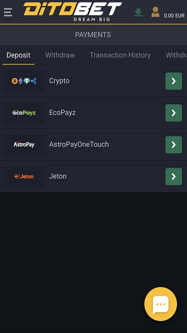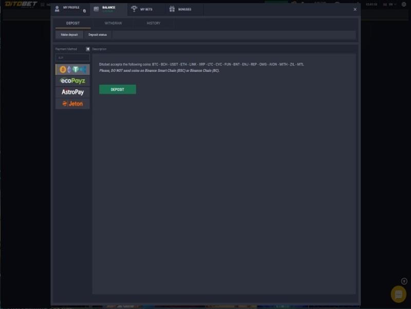 Banking银⾏业务选项 的 Ditobet Casino