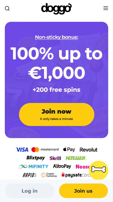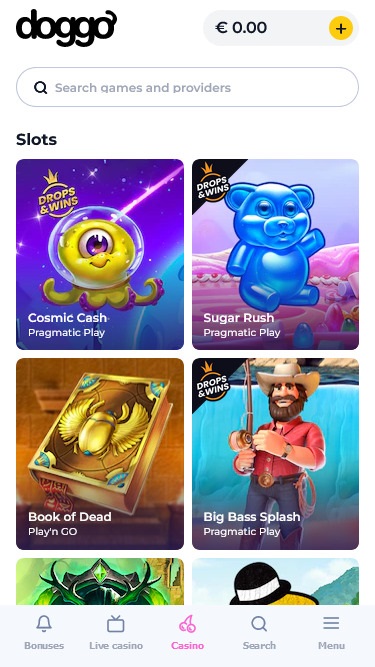 我们已经提到,Doggo 在选择在线赌场软件开发商方面做出了一些不错的选择。合作伙伴包括 Microgaming、Quickspin、 Relax Gaming 、Evolution Gaming……经验丰富的玩家可能已经认出了他们最喜欢的一些在线赌场游戏的开发者!