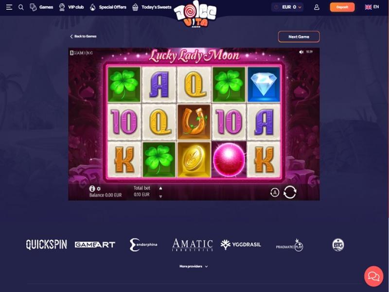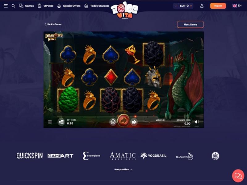 尽管我们已经看到了更大的视频老虎机集合,但 Dolcevita Casino 提供了一个有吸引力的老虎机部分,其中包括具有各种主题和卷轴设置的相当有趣的游戏。