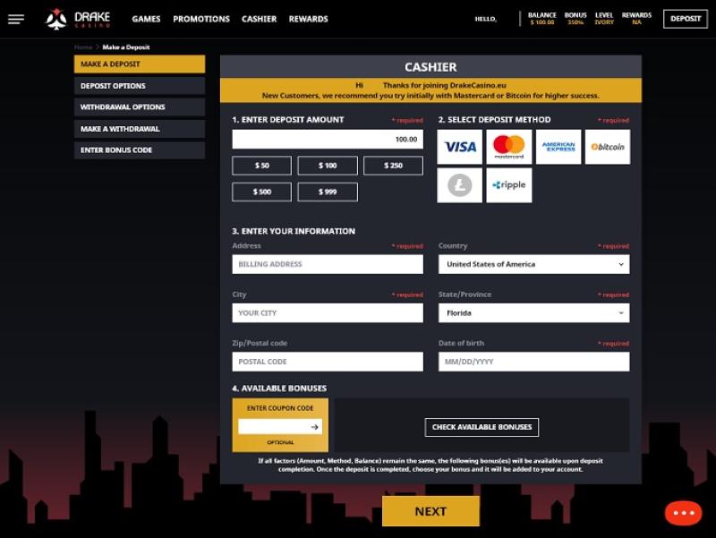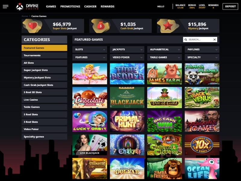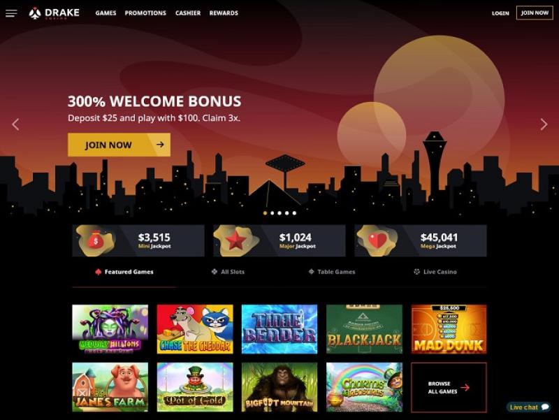 Drake Casino 由 BetSoft, Rival, Saucify, Arrows Edge, Inbet Games, Nucleus Gaming, Fresh Deck Studios, Genii, Proprietary and FlipLuck提供支持,为玩家提供玩大量 3D 老虎机、桌面游戏和其他值得玩的游戏的机会。