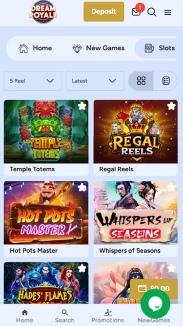 在 Dream Royal,浏览和发现新游戏非常容易。玩家可以根据不同的参数进行搜索,无论是卷轴类型、特殊功能还是最新版本。