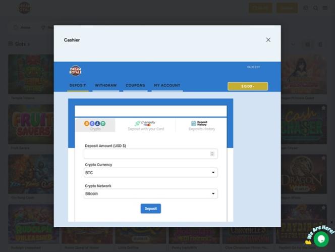 Dream Royale 的注册分为三个步骤,过程简单快捷,之后玩家可以访问用户友好的玩家仪表板以及诱人的服务和功能,包括欢迎赌场奖金、通过电子邮件和在线聊天提供的专业客户支持服务、忠诚度奖励和其他好处。