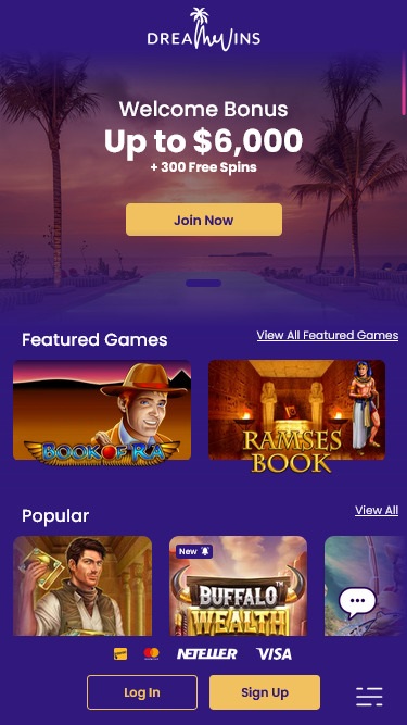 正如预期的那样,DreamWins 赌场可通过任何可用设备(台式机或移动设备)访问,这意味着该网站已进行跨平台优化。无论您选择使用哪种设备,无论其操作系统是什么,只要您拥有稳定的互联网连接,就能享受快速的游戏加载速度和流畅的体验。