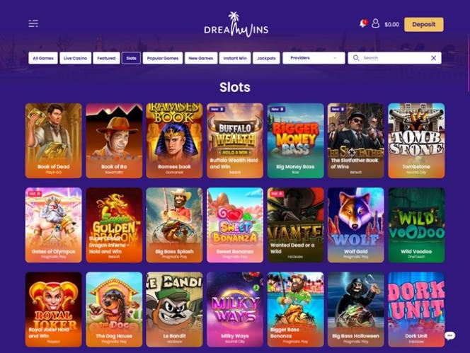 DreamWins 与众多赌场软件开发商合作,玩家可以探索由Pragmatic Play、Evolution Gaming、Relax Gaming等 iGaming 巨头以及专注于为在线赌博世界带来吸引人的创新的小型游戏工作室制作的内容。