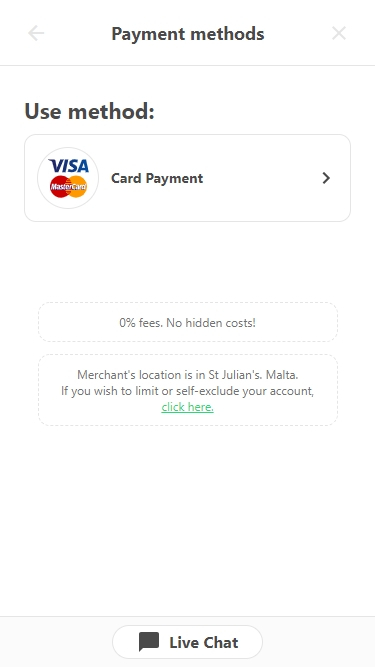 请注意,如果您通过信用卡/借记卡存款,且提款金额等于或小于存款金额,赌场保留将提款金额退还至您使用的信用卡/借记卡的权利。如果提款金额超过存款金额,超出部分将通过其他支付方式支付。