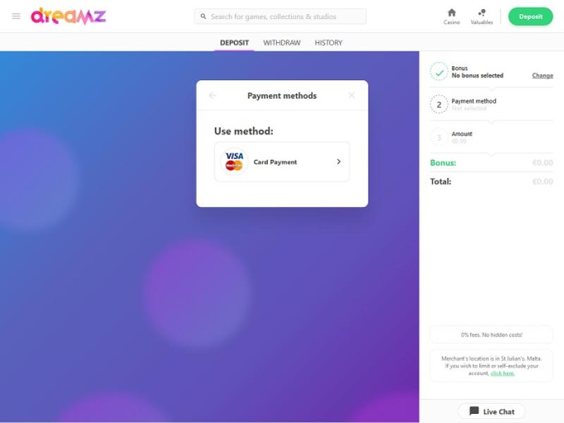 Dreamz Casino 是一家在线赌场,由 N1 Interactive Ltd 拥有和运营,N1 Interactive Ltd 是一家根据马耳他法律注册成立的知名公司,由马耳他博彩管理局授权和监管。