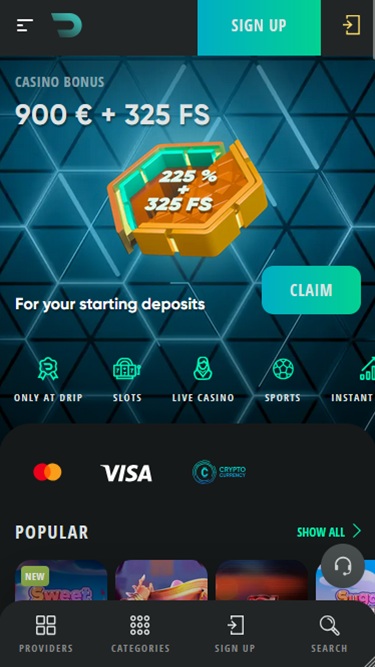 DRIP 赌场欢迎来自德国、加拿大、新西兰和奥地利的玩家加入他们的赌博平台,以便他们可以享受自己选择的游戏。